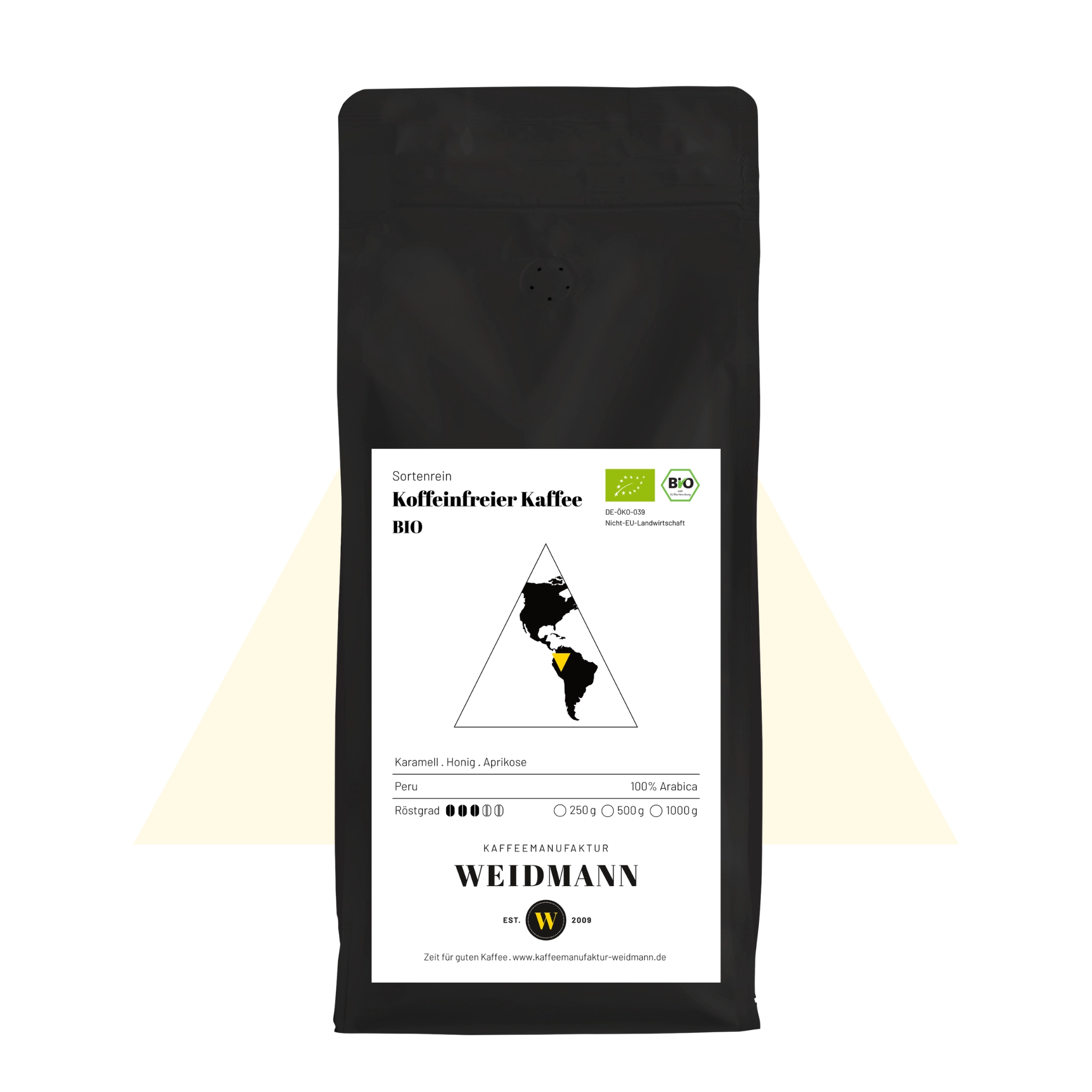 Biologisch angebauter Arabica, der dir unbeschwerten, vollmundigen Kaffeegenuss beschert. Besonders schonend auf Wasserbasis entkoffeiniert. Leichter Genuss, der nichts an Vollmundigkeit und Genuss einbüßt.